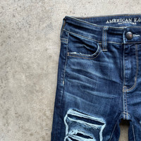 [DESCRIPTION] Please read the description first before buy my items‼️‼️‼️ Vtg American Eagle Outfitters Distressed Denim Jeans Pants Size on tag : [MATERIAL] Cotton [MEASUREMENT] Measurement ( WHEN LAID FLAT ): Waist: 26 inch (recommended) Insean: 30 inch Length: 39 inch Front Rise: 9 inch Thigh: 15 inch Opening Leg: 10 inch [CONDITION] - Used, Please refer photos [PAYMENT & NOTICE] - We accept PayPal ONLY - No return/refund - All items will be post over shipping company counter within 1-3 working days after payment completed and please allow 1-3 weeks for shipping delivery to your destination. -We are trusted seller. Do message me if you have any questions to ask about this item. 🍃 Please leave your phone number after your purchase for shipping ❌ATTENTION❌ 💥Do not rely on tag size as pre-worn item may have been altered,stretched or shrunk & vintage sizes do not directly translate the modern sizes 💥Item above 100$ will be shipped via dhl express and below 100$ will be shipped via Standart International Shipping.Or if your price is lower than 100$ but urgently need the item ,please add another 25$,i will arrange best shipping company 💥No shipping to Israel 💥Bundle buy get special price ALL ITEMS ARE SHIPPED VIA REGISTERED AIR MAIL MALAYSIAN POST SIGN FOR WITH TRACKING NUMBER. REFF#0894