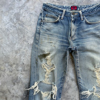 [DESCRIPTION] Please read the description first before buy my items‼️‼️‼️ Vintage Japanese Distressed Jeans Denim Pants Size on tag : [MATERIAL] Cotton [MEASUREMENT] Measurement ( WHEN LAID FLAT ): Waist: 29 inch (recommended) Insean: 31 inch Length: 40.5 inch Front Rise: 10 inch Thigh: 20 inch Opening Leg: 16 inch [CONDITION] - Used, Please refer photos [PAYMENT & NOTICE] - We accept PayPal ONLY - No return/refund - All items will be post over shipping company counter within 1-3 working days after payment completed and please allow 1-3 weeks for shipping delivery to your destination. -We are trusted seller. Do message me if you have any questions to ask about this item. 🍃 Please leave your phone number after your purchase for shipping ❌ATTENTION❌ 💥Do not rely on tag size as pre-worn item may have been altered,stretched or shrunk & vintage sizes do not directly translate the modern sizes 💥Item above 100$ will be shipped via dhl express and below 100$ will be shipped via Standart International Shipping.Or if your price is lower than 100$ but urgently need the item ,please add another 25$,i will arrange best shipping company 💥No shipping to Israel 💥Bundle buy get special price ALL ITEMS ARE SHIPPED VIA REGISTERED AIR MAIL MALAYSIAN POST SIGN FOR WITH TRACKING NUMBER. REFF#06649