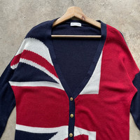 PLEASE READ DESCRIPTION FIRST BEFORE BUYINGā¼ļøā¼ļø Vintage Japanese Union Jack Flag Cloured Cardigan Knitwear RARE Size on tag : ( Please refer measurement below ) ā¢MEASUREMENT Armpit to armpit : 22 inches Length from top to buttom : 31 inches Sleeve length : 19.5 inches ā¢CONDITION All in good condition No hole No Stain ā¢MATERIAL Acrylic Nylon Angora ā¢PAYMENT & SHIPPING: -Accept PAYPALL only -Dont Worry About Custom Tax or Fees. I Usually Declare All Items Lower Than Original Price. -Please Leave Your Phone Number After Buying For Shipping Purpose And Please Make Sure Your Address Is Complete And Correct. -NO RETURN / REFUND After Paid. All Purchased Is FINAL. š„ We ship to worldwide with a tracking number. - All item will ship from Malaysia and will be ship by post Malaysia ( Flexipack ) - All item will be shipped out within 2-3 business days ( handling time ) after payment received - Ussually it takes about 12 - 24 business days for delivery for all international order š„Add 20 USD for speedy delivery via DHL Express Service. It will take 4 - 7 working days to deliver ā¼ļøATTENTIONā¼ļø š„Do not rely on tag size as pre-worn item may have been altered,stretched or shrunk & vintage sizes do not directly translate the modern sizes š„Buy bundle to get special price THANK YOU #REF0911