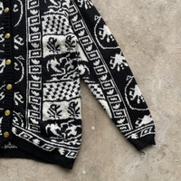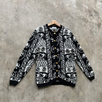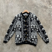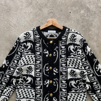 PLEASE READ DESCRIPTION FIRST BEFORE BUYING‼️‼️ Vintage Palls Pyra Black/White Full Print Button Up Cardigan Size on tag : ( Please refer measurement below ) •MEASUREMENT Armpit to armpit : 19.5 inches Length from top to buttom : 27 inches Sleeve length : 17 inches •CONDITION All in good condition No hole No Stain •MATERIAL Acrylic Wool •PAYMENT & SHIPPING: -Accept PAYPALL only -Dont Worry About Custom Tax or Fees. I Usually Declare All Items Lower Than Original Price. -Please Leave Your Phone Number After Buying For Shipping Purpose And Please Make Sure Your Address Is Complete And Correct. -NO RETURN / REFUND After Paid. All Purchased Is FINAL. 💥 We ship to worldwide with a tracking number. - All item will ship from Malaysia and will be ship by post Malaysia ( Flexipack ) - All item will be shipped out within 2-3 business days ( handling time ) after payment received - Ussually it takes about 12 - 24 business days for delivery for all international order 💥Add 20 USD for speedy delivery via DHL Express Service. It will take 4 - 7 working days to deliver ‼️ATTENTION‼️ 💥Do not rely on tag size as pre-worn item may have been altered,stretched or shrunk & vintage sizes do not directly translate the modern sizes 💥Buy bundle to get special price THANK YOU #REF0980