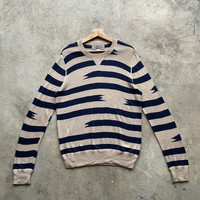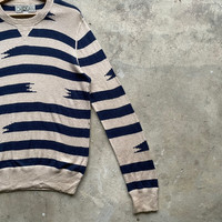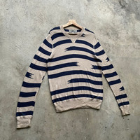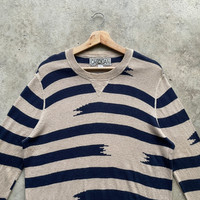 Japanese Brand - Vintage Japanese Blue Striped Knitwear Sweater Jumper