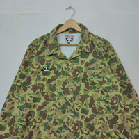 PLEASE READ DESCRIPTION FIRST BEFORE BUYING‼️‼️ Vintage PANDIESTA JAPAN Frog Skin Camo Jacket saiz on tag : XXL (tag say XXL, fit like L) ( Please refer measurement below ) •MEASUREMENT Armpit to armpit : 23.5 inches Length from top to buttom : 29.5 inches Sleeve length : 19.5 inches •CONDITION All in good condition No hole No Stain •MATERIAL Cotton •SHIPPING 💥 We ship to worldwide with a tracking number. - All item will ship from Malaysia and will be ship by post Malaysia ( Flexipack ) - All item will be shipped out within 2-3 business days ( handling time ) after payment received - Ussually it takes about 12 - 24 business days for delivery for all international order 💥Add 20 USD for speedy delivery via DHL Express Service. It will take 4 - 7 working days to deliver ‼️ATTENTION‼️ 💥Do not rely on tag size as pre-worn item may have been altered,stretched or shrunk & vintage sizes do not directly translate the modern sizes 💥Buy combo to get special price THANK YOU #REF0296