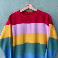 PLEASE READ DESCRIPTION FIRST BEFORE BUYING‼️‼️ Japanese Vintage RAINBOW Knitwear Sweater Jumper!! ( Please refer measurement below ) •MEASUREMENT Armpit to armpit : 23 inches Length from top to buttom : 23 inches Sleeve length : 16 inches •CONDITION All in good condition No hole No Stain •MATERIAL Cotton Polyester •PAYMENT & SHIPPING: -Accept PAYPALL only -Dont Worry About Custom Tax or Fees. I Usually Declare All Items Lower Than Original Price. -Please Leave Your Phone Number After Buying For Shipping Purpose And Please Make Sure Your Address Is Complete And Correct. -NO RETURN / REFUND After Paid. All Purchased Is FINAL. 💥 We ship to worldwide with a tracking number. - All item will ship from Malaysia and will be ship by post Malaysia ( Flexipack ) - All item will be shipped out within 2-3 business days ( handling time ) after payment received - Ussually it takes about 12 - 24 business days for delivery for all international order 💥Add 20 USD for speedy delivery via DHL Express Service. It will take 4 - 7 working days to deliver ‼️ATTENTION‼️ 💥Do not rely on tag size as pre-worn item may have been altered,stretched or shrunk & vintage sizes do not directly translate the modern sizes 💥Buy bundle to get special price THANK YOU #REF0346