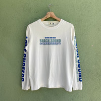 PLEASE READ DESCRIPTION FIRST BEFORE BUYING‼️‼️ Vintage Beach Sound MultiLogo Full Print Long Sleeve Shirt Size on tag : S ( Please refer measurement below ) •MEASUREMENT Armpit to armpit : 19 inches Length from top to buttom : 25 inches Sleeve length : 19.5 inches •CONDITION Used, kindly please refer photos Have sun effects •MATERIAL Cotton •PAYMENT & SHIPPING: -Accept PAYPALL only -Dont Worry About Custom Tax or Fees. I Usually Declare All Items Lower Than Original Price. -Please Leave Your Phone Number After Buying For Shipping Purpose And Please Make Sure Your Address Is Complete And Correct. -NO RETURN / REFUND After Paid. All Purchased Is FINAL. 💥 We ship to worldwide with a tracking number. - All item will ship from Malaysia and will be ship by post Malaysia ( Flexipack ) - All item will be shipped out within 2-3 business days ( handling time ) after payment received - Ussually it takes about 12 - 24 business days for delivery for all international order 💥Add 20 USD for speedy delivery via DHL Express Service. It will take 4 - 7 working days to deliver ‼️ATTENTION‼️ 💥Do not rely on tag size as pre-worn item may have been altered,stretched or shrunk & vintage sizes do not directly translate the modern sizes 💥Buy bundle to get special price THANK YOU #REF0720
