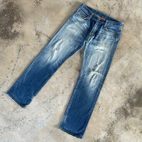 [DESCRIPTION] Please read the description first before buy my items‼️‼️‼️ Vintage Japanese Brand Faded Distressed Denim Jeans Pants Size on tag : [MATERIAL] Cotton [MEASUREMENT] Measurement ( WHEN LAID FLAT ): Waist: 34 inch (recommended) Insean: 33.5 inch Length: 43.5 inch Front Rise: 11 inch Thigh: 23 inch Opening Leg: 17 inch [CONDITION] - Used, Please refer photos [PAYMENT & NOTICE] - We accept PayPal ONLY - No return/refund - All items will be post over shipping company counter within 1-3 working days after payment completed and please allow 1-3 weeks for shipping delivery to your destination. -We are trusted seller. Do message me if you have any questions to ask about this item. 🍃 Please leave your phone number after your purchase for shipping ❌ATTENTION❌ 💥Do not rely on tag size as pre-worn item may have been altered,stretched or shrunk & vintage sizes do not directly translate the modern sizes 💥Item above 100$ will be shipped via FEDEX express and below 100$ will be shipped via Standart International Shipping.Or if your price is lower than 100$ but urgently need the item ,please add another 25$,i will arrange best shipping company 💥No shipping to Israel 💥Bundle buy get special price ALL ITEMS ARE SHIPPED VIA REGISTERED AIR MAIL MALAYSIAN POST SIGN FOR WITH TRACKING NUMBER. REFF# 1158 JN23