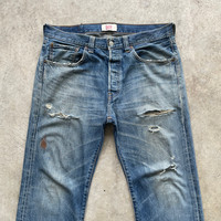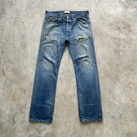 [DESCRIPTION] Please read the description first before buy my items‼️‼️‼️ Vintage Levis 501 Distressed Denim Jeans Pants THRASHED Size on tag : [MATERIAL] Cotton [MEASUREMENT] Measurement ( WHEN LAID FLAT ): Waist: 34 inch (recommended) Insean: 32 inch Length: 43.5 inch Front Rise: 11 inch Thigh: 22 inch Opening Leg: 17 inch [CONDITION] - Used, Please refer photos [PAYMENT & NOTICE] - We accept PayPal ONLY - No return/refund - All items will be post over shipping company counter within 1-3 working days after payment completed and please allow 1-3 weeks for shipping delivery to your destination. -We are trusted seller. Do message me if you have any questions to ask about this item. 🍃 Please leave your phone number after your purchase for shipping ❌ATTENTION❌ 💥Do not rely on tag size as pre-worn item may have been altered,stretched or shrunk & vintage sizes do not directly translate the modern sizes 💥Item above 100$ will be shipped via dhl express and below 100$ will be shipped via Standart International Shipping.Or if your price is lower than 100$ but urgently need the item ,please add another 25$,i will arrange best shipping company 💥No shipping to Israel 💥Bundle buy get special price ALL ITEMS ARE SHIPPED VIA REGISTERED AIR MAIL MALAYSIAN POST SIGN FOR WITH TRACKING NUMBER. REFF#0814