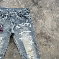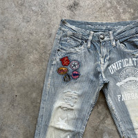 [DESCRIPTION] Please read the description first before buy my items‼️‼️‼️ Vtg Designer Faded With Patches Hickory Stripe Jeans Pants Size on tag : [MATERIAL] Cotton [MEASUREMENT] Measurement ( WHEN LAID FLAT ): Waist: 30 inch (recommended) Insean: 30 inch Length: 39 inch Front Rise: 9 inch Thigh: 20 inch Opening Leg: 16 inch [CONDITION] - Used, Please refer photos [PAYMENT & NOTICE] - We accept PayPal ONLY - No return/refund - All items will be post over shipping company counter within 1-3 working days after payment completed and please allow 1-3 weeks for shipping delivery to your destination. -We are trusted seller. Do message me if you have any questions to ask about this item. 🍃 Please leave your phone number after your purchase for shipping ❌ATTENTION❌ 💥Do not rely on tag size as pre-worn item may have been altered,stretched or shrunk & vintage sizes do not directly translate the modern sizes 💥Item above 100$ will be shipped via dhl express and below 100$ will be shipped via Standart International Shipping.Or if your price is lower than 100$ but urgently need the item ,please add another 25$,i will arrange best shipping company 💥No shipping to Israel 💥Bundle buy get special price ALL ITEMS ARE SHIPPED VIA REGISTERED AIR MAIL MALAYSIAN POST SIGN FOR WITH TRACKING NUMBER. REFF#0746