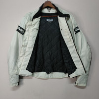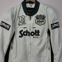 PLEASE READ DESCRIPTION FIRST BEFORE BUYING‼️‼️ 💥 VINTAGE SCHOTT N.Y.C BIG LOGO ZIPPER UPS BIKES JACKET ( Please refer measurement below ) •MEASUREMENT Armpit to armpit : 21 inches Length from top to buttom : 25.5 inches Sleeve length : 20 inches •CONDITION All in good condition No hole No Stain •MATERIAL Cotton •SHIPPING 💥 We ship to worldwide with a tracking number. - All item will ship from Malaysia and will be ship by post Malaysia ( Flexipack ) - All item will be shipped out within 2-3 business days ( handling time ) after payment received - Ussually it takes about 12 - 24 business days for delivery for all international order 💥Add 20 USD for speedy delivery via DHL Express Service. It will take 4 - 7 working days to deliver ‼️ATTENTION‼️ 💥Do not rely on tag size as pre-worn item may have been altered,stretched or shrunk & vintage sizes do not directly translate the modern sizes THANK YOU #REF0085