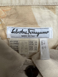 VERY RARE VINTAGE JACKET TRUCKER VEST SALVATORE FERRAGAMO FLOWER PRINTED Marked size: 48/46/44 Shoulder to shoulder: 16 Pit to pit: 21 Length: 24 Please make sure to check all pictures and measurements before buying, used product might have some discoloration, marks, scuff, or stains and colors can differ slightly from one monitor to another. You can always ask us to take more picture. Shipment Policy: - Please leave us your CONTACT NUMBER, as it is MANDATORY when shipping your item or else, we will put in a random contact number with consequences the item might get rejected or returned by post services. - Orders are processed within 1-3 working days. Some post services require you to pick up the item at your nearest post office, this depends on the post services, so please always keep checking the post tracking. - International shipping usually takes more than 7-14 working days, it could be either faster or longer. Exchange & Returns Policy: - Since we are selling a used product, we did NOT accept any exchange, refunds, or returns. - Make sure you recheck the whole description, measurement, and pictures. Do not hesitate to ask us anything, we always ready to answer your questions. Follow us on IG: @vintage.collections