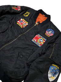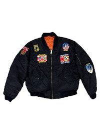 VERY RARE VINTAGE JACKET FLIGHT BOMBER MA 1 FULL PATCHES Marked size: SMALL Shoulder to shoulder: 25 Pit to pit: 27 Length: 19 Sleeve length: 25 Please make sure to check all pictures and measurements before buying, used product might have some discoloration, marks, scuff, or stains and colors can differ slightly from one monitor to another. You can always ask us to take more picture. Shipment Policy: - Please leave us your CONTACT NUMBER, as it is MANDATORY when shipping your item or else, we will put in a random contact number with consequences the item might get rejected or returned by post services. - Orders are processed within 1-3 working days. Some post services require you to pick up the item at your nearest post office, this depends on the post services, so please always keep checking the post tracking. - International shipping usually takes more than 7-14 working days, it could be either faster or longer. Exchange & Returns Policy: - Since we are selling a used product, we did NOT accept any exchange, refunds, or returns. - Make sure you recheck the whole description, measurement, and pictures. Do not hesitate to ask us anything, we always ready to answer your questions. Follow us on IG: @vintage.collections