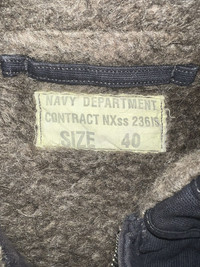 VERY RARE VINTAGE JACKET DECK N1 USN US NAVY BUCKANEERS BUZZ RICKSON TOYO ENTERPRISE Marked size: 40 Shoulder to shoulder: 17 Pit to pit: 21 Length: 25 Sleeve length: 24,5 Please make sure to check all pictures and measurements before buying, used product might have some discoloration, marks, scuff, or stains and colors can differ slightly from one monitor to another. You can always ask us to take more picture. Shipment Policy: - Please leave us your CONTACT NUMBER, as it is MANDATORY when shipping your item or else, we will put in a random contact number with consequences the item might get rejected or returned by post services. - Orders are processed within 1-3 working days. Some post services require you to pick up the item at your nearest post office, this depends on the post services, so please always keep checking the post tracking. - International shipping usually takes more than 7-14 working days, it could be either faster or longer. Exchange & Returns Policy: - Since we are selling a used product, we did NOT accept any exchange, refunds, or returns. - Make sure you recheck the whole description, measurement, and pictures. Do not hesitate to ask us anything, we always ready to answer your questions. Follow us on IG: @vintage.collections