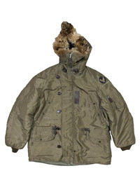 VERY RARE VINTAGE JACKET BUZZ RICKSON REED PRODUCTS TOYO ENTERPRISE PARKA COAT N3B US AIR FORCE USAF REAL WOLF FUR Marked size: LARGE Shoulder to shoulder: 24 Pit to pit: 27 Length: 33 Sleeve length: 25 Please make sure to check all pictures and measurements before buying, used product might have some discoloration, marks, scuff, or stains and colors can differ slightly from one monitor to another. You can always ask us to take more picture. Shipment Policy: - Please leave us your CONTACT NUMBER, as it is MANDATORY when shipping your item or else, we will put in a random contact number with consequences the item might get rejected or returned by post services. - Orders are processed within 1-3 working days. Some post services require you to pick up the item at your nearest post office, this depends on the post services, so please always keep checking the post tracking. - International shipping usually takes more than 7-14 working days, it could be either faster or longer. Exchange & Returns Policy: - Since we are selling a used product, we did NOT accept any exchange, refunds, or returns. - Make sure you recheck the whole description, measurement, and pictures. Do not hesitate to ask us anything, we always ready to answer your questions. Follow us on IG: @vintage.collections