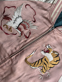 VERY RARE VINTAGE JACKET SOUVENIR SUKAJAN TIGER DRAGON RAYON MANUAL EMBROIDERY Marked size: M Shoulder to shoulder: 18 Pit to pit: 20,5 Length: 25 Sleeve length: 23 Please make sure to check all pictures and measurements before buying, used product might have some discoloration, marks, scuff, or stains and colors can differ slightly from one monitor to another. You can always ask us to take more picture. Shipment Policy: - Please leave us your CONTACT NUMBER, as it is MANDATORY when shipping your item or else, we will put in a random contact number with consequences the item might get rejected or returned by post services. - Orders are processed within 1-3 working days. Some post services require you to pick up the item at your nearest post office, this depends on the post services, so please always keep checking the post tracking. - International shipping usually takes more than 7-14 working days, it could be either faster or longer. Exchange & Returns Policy: - Since we are selling a used product, we did NOT accept any exchange, refunds, or returns. - Make sure you recheck the whole description, measurement, and pictures. Do not hesitate to ask us anything, we always ready to answer your questions. Follow us on IG: @vintage.collections