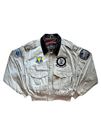 VERY RARE VINTAGE JACKET FLIGHT BOMBER AVIREX A2 PRINTED PAINTING Marked size: S Shoulder to shoulder: 25 Pit to pit: 25 Length: 22 Sleeve length: 24 Please make sure to check all pictures and measurements before buying, used product might have some discoloration, marks, scuff, or stains and colors can differ slightly from one monitor to another. You can always ask us to take more picture. Shipment Policy: - Please leave us your CONTACT NUMBER, as it is MANDATORY when shipping your item or else, we will put in a random contact number with consequences the item might get rejected or returned by post services. - Orders are processed within 1-3 working days. Some post services require you to pick up the item at your nearest post office, this depends on the post services, so please always keep checking the post tracking. - International shipping usually takes more than 7-14 working days, it could be either faster or longer. Exchange & Returns Policy: - Since we are selling a used product, we did NOT accept any exchange, refunds, or returns. - Make sure you recheck the whole description, measurement, and pictures. Do not hesitate to ask us anything, we always ready to answer your questions. Follow us on IG: @vintage.collections