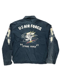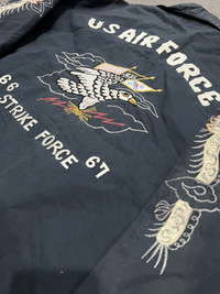 VERY RARE VINTAGE JACKET SOUVENIR SUKAJAN USAF US AIR FORCE SUGAR CANE TOYO ENTERPRISE Marked size: 40 Shoulder to shoulder: 18 Pit to pit: 26 Length: 27 Sleeve length: 25 Please make sure to check all pictures and measurements before buying, used product might have some discoloration, marks, scuff, or stains and colors can differ slightly from one monitor to another. You can always ask us to take more picture. Shipment Policy: - Please leave us your CONTACT NUMBER, as it is MANDATORY when shipping your item or else, we will put in a random contact number with consequences the item might get rejected or returned by post services. - Orders are processed within 1-3 working days. Some post services require you to pick up the item at your nearest post office, this depends on the post services, so please always keep checking the post tracking. - International shipping usually takes more than 7-14 working days, it could be either faster or longer. Exchange & Returns Policy: - Since we are selling a used product, we did NOT accept any exchange, refunds, or returns. - Make sure you recheck the whole description, measurement, and pictures. Do not hesitate to ask us anything, we always ready to answer your questions. Follow us on IG: @vintage.collections