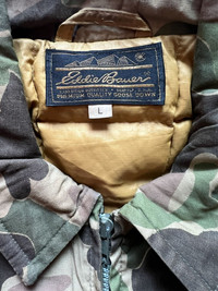 VERY RARE VINTAGE JACKET EDDIE BAUER GOOSE DOWN PUFFER BEOGAM DUCK CAMO FROGSKIN Marked size: L Shoulder to shoulder: 21 Pit to pit: 27 Length: 33 Sleeve length: 24 Please make sure to check all pictures and measurements before buying, used product might have some discoloration, marks, scuff, or stains and colors can differ slightly from one monitor to another. You can always ask us to take more picture. Shipment Policy: - Please leave us your CONTACT NUMBER, as it is MANDATORY when shipping your item or else, we will put in a random contact number with consequences the item might get rejected or returned by post services. - Orders are processed within 1-3 working days. Some post services require you to pick up the item at your nearest post office, this depends on the post services, so please always keep checking the post tracking. - International shipping usually takes more than 7-14 working days, it could be either faster or longer. Exchange & Returns Policy: - Since we are selling a used product, we did NOT accept any exchange, refunds, or returns. - Make sure you recheck the whole description, measurement, and pictures. Do not hesitate to ask us anything, we always ready to answer your questions. Follow us on IG: @vintage.collections