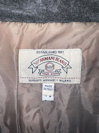 VERY RARE VINTAGE JACKET GIORGIO ARMANI JEANS WINTER COAT Marked size: 48 Shoulder to shoulder: 21 Pit to pit: 25 Length: 31 Sleeve length: 23 Please make sure to check all pictures and measurements before buying, used product might have some discoloration, marks, scuff, or stains and colors can differ slightly from one monitor to another. You can always ask us to take more picture. Shipment Policy: - Please leave us your CONTACT NUMBER, as it is MANDATORY when shipping your item or else, we will put in a random contact number with consequences the item might get rejected or returned by post services. - Orders are processed within 1-3 working days. Some post services require you to pick up the item at your nearest post office, this depends on the post services, so please always keep checking the post tracking. - International shipping usually takes more than 7-14 working days, it could be either faster or longer. Exchange & Returns Policy: - Since we are selling a used product, we did NOT accept any exchange, refunds, or returns. - Make sure you recheck the whole description, measurement, and pictures. Do not hesitate to ask us anything, we always ready to answer your questions. Follow us on IG: @vintage.collections