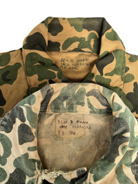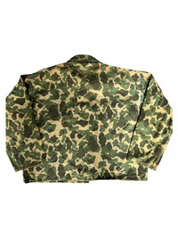 VERY RARE VINTAGE JACKET SHIRT FROGSKIN DUCK CAMO OKINAWA MADE VIETNAM WAR GROUPING Marked size: - Shoulder to shoulder: 21,5 Pit to pit: 27 Length: 24 Sleeve length: 21 Please make sure to check all pictures and measurements before buying, used product might have some discoloration, marks, scuff, or stains and colors can differ slightly from one monitor to another. You can always ask us to take more picture. Shipment Policy: - Please leave us your CONTACT NUMBER, as it is MANDATORY when shipping your item or else, we will put in a random contact number with consequences the item might get rejected or returned by post services. - Orders are processed within 1-3 working days. Some post services require you to pick up the item at your nearest post office, this depends on the post services, so please always keep checking the post tracking. - International shipping usually takes more than 7-14 working days, it could be either faster or longer. Exchange & Returns Policy: - Since we are selling a used product, we did NOT accept any exchange, refunds, or returns. - Make sure you recheck the whole description, measurement, and pictures. Do not hesitate to ask us anything, we always ready to answer your questions. Follow us on IG: @vintage.collections
