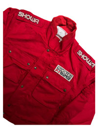 VERY RARE VINTAGE JACKET SHOWA RACING TEAM FORMULA 1 WORLD GRAND PRIX Marked size: L Shoulder to shoulder: 23 Pit to pit: 26 Length: 25 Sleeve length: 22 Please make sure to check all pictures and measurements before buying, used product might have some discoloration, marks, scuff, or stains and colors can differ slightly from one monitor to another. You can always ask us to take more picture. Shipment Policy: - Please leave us your CONTACT NUMBER, as it is MANDATORY when shipping your item or else, we will put in a random contact number with consequences the item might get rejected or returned by post services. - Orders are processed within 1-3 working days. Some post services require you to pick up the item at your nearest post office, this depends on the post services, so please always keep checking the post tracking. - International shipping usually takes more than 7-14 working days, it could be either faster or longer. Exchange & Returns Policy: - Since we are selling a used product, we did NOT accept any exchange, refunds, or returns. - Make sure you recheck the whole description, measurement, and pictures. Do not hesitate to ask us anything, we always ready to answer your questions. Follow us on IG: @vintage.collections