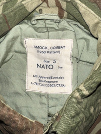VERY RARE VINTAGE JACKET SMOCK BRITISH ARMY RHODESIAN CAMO BUSH WAR Marked size: 5 Shoulder to shoulder: 18 Pit to pit: 24 Length: 30 Sleeve length: 24 Please make sure to check all pictures and measurements before buying, used product might have some discoloration, marks, scuff, or stains and colors can differ slightly from one monitor to another. You can always ask us to take more picture. Shipment Policy: - Please leave us your CONTACT NUMBER, as it is MANDATORY when shipping your item or else, we will put in a random contact number with consequences the item might get rejected or returned by post services. - Orders are processed within 1-3 working days. Some post services require you to pick up the item at your nearest post office, this depends on the post services, so please always keep checking the post tracking. - International shipping usually takes more than 7-14 working days, it could be either faster or longer. Exchange & Returns Policy: - Since we are selling a used product, we did NOT accept any exchange, refunds, or returns. - Make sure you recheck the whole description, measurement, and pictures. Do not hesitate to ask us anything, we always ready to answer your questions. Follow us on IG: @vintage.collections