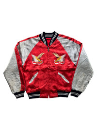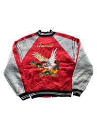 VERY RARE VINTAGE JACKET SOUVENIR SUKAJAN AMERICA EAGLES Marked size: - Shoulder to shoulder: 19 Pit to pit: 22,5 Length: 23 Sleeve length: 25 Please make sure to check all pictures and measurements before buying, used product might have some discoloration, marks, scuff, or stains and colors can differ slightly from one monitor to another. You can always ask us to take more picture. Shipment Policy: - Please leave us your CONTACT NUMBER, as it is MANDATORY when shipping your item or else, we will put in a random contact number with consequences the item might get rejected or returned by post services. - Orders are processed within 1-3 working days. Some post services require you to pick up the item at your nearest post office, this depends on the post services, so please always keep checking the post tracking. - International shipping usually takes more than 7-14 working days, it could be either faster or longer. Exchange & Returns Policy: - Since we are selling a used product, we did NOT accept any exchange, refunds, or returns. - Make sure you recheck the whole description, measurement, and pictures. Do not hesitate to ask us anything, we always ready to answer your questions. Follow us on IG: @vintage.collections