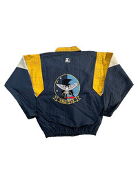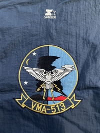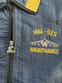 VERY RARE VINTAGE JACKET STARTER MILITARY VMA 513 NIGHTMARES SOUVENIR JACKET Marked size: - Shoulder to shoulder: 28 Pit to pit: 30 Length: 29 Sleeve length: 22 Please make sure to check all pictures and measurements before buying, used product might have some discoloration, marks, scuff, or stains and colors can differ slightly from one monitor to another. You can always ask us to take more picture. Shipment Policy: - Please leave us your CONTACT NUMBER, as it is MANDATORY when shipping your item or else, we will put in a random contact number with consequences the item might get rejected or returned by post services. - Orders are processed within 1-3 working days. Some post services require you to pick up the item at your nearest post office, this depends on the post services, so please always keep checking the post tracking. - International shipping usually takes more than 7-14 working days, it could be either faster or longer. Exchange & Returns Policy: - Since we are selling a used product, we did NOT accept any exchange, refunds, or returns. - Make sure you recheck the whole description, measurement, and pictures. Do not hesitate to ask us anything, we always ready to answer your questions. Follow us on IG: @vintage.collections