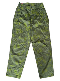 VERY RARE VINTAGE PANTS TROUSER RUSSIAN ARMY BEREZKA KZM Marked size: - Waist: 13,5 Inseam: 30 Leg opening: 8,5 Front rise: 13 Please make sure to check all pictures and measurements before buying, used product might have some discoloration, marks, scuff, or stains and colors can differ slightly from one monitor to another. You can always ask us to take more picture. Shipment Policy: - Please leave us your CONTACT NUMBER, as it is MANDATORY when shipping your item or else, we will put in a random contact number with consequences the item might get rejected or returned by post services. - Orders are processed within 1-3 working days. Some post services require you to pick up the item at your nearest post office, this depends on the post services, so please always keep checking the post tracking. - International shipping usually takes more than 7-14 working days, it could be either faster or longer. Exchange & Returns Policy: - Since we are selling a used product, we did NOT accept any exchange, refunds, or returns. - Make sure you recheck the whole description, measurement, and pictures. Do not hesitate to ask us anything, we always ready to answer your questions. Follow us on IG: @vintage.collections