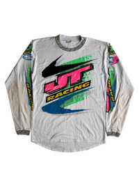 VERY RARE VINTAGE SHIRT JERSEY JT RACING USA MOTOCROSS Marked size: MD Shoulder to shoulder: 19 Pit to pit: 20,5 Length: 29,5 Sleeve length: 25 Please make sure to check all pictures and measurements before buying, used product might have some discoloration, marks, scuff, or stains and colors can differ slightly from one monitor to another. You can always ask us to take more picture. Shipment Policy: - Please leave us your CONTACT NUMBER, as it is MANDATORY when shipping your item or else, we will put in a random contact number with consequences the item might get rejected or returned by post services. - Orders are processed within 1-3 working days. Some post services require you to pick up the item at your nearest post office, this depends on the post services, so please always keep checking the post tracking. - International shipping usually takes more than 7-14 working days, it could be either faster or longer. Exchange & Returns Policy: - Since we are selling a used product, we did NOT accept any exchange, refunds, or returns. - Make sure you recheck the whole description, measurement, and pictures. Do not hesitate to ask us anything, we always ready to answer your questions. Follow us on IG: @vintage.collections