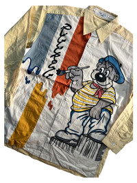 VERY RARE VINTAGE SHIRTS BUTTON UP VAZIIE SPORT CARTOON ART EMBROIDERY Marked size: 46 Shoulder to shoulder: 20 Pit to pit: 22,5 Length: 29,5 Sleeve length: 22 Please make sure to check all pictures and measurements before buying, used product might have some discoloration, marks, scuff, or stains and colors can differ slightly from one monitor to another. You can always ask us to take more picture. Shipment Policy: - Please leave us your CONTACT NUMBER, as it is MANDATORY when shipping your item or else, we will put in a random contact number with consequences the item might get rejected or returned by post services. - Orders are processed within 1-3 working days. Some post services require you to pick up the item at your nearest post office, this depends on the post services, so please always keep checking the post tracking. - International shipping usually takes more than 7-14 working days, it could be either faster or longer. Exchange & Returns Policy: - Since we are selling a used product, we did NOT accept any exchange, refunds, or returns. - Make sure you recheck the whole description, measurement, and pictures. Do not hesitate to ask us anything, we always ready to answer your questions. Follow us on IG: @vintage.collections