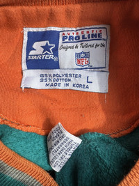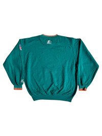 VERY RARE VINTAGE SWEATSHIRT MIAMI DOLPHINS STARTER NFL NBA MLB FOOTBALL Marked size: L Shoulder to shoulder: 24 Pit to pit: 26 Length: 27 Sleeve length: 22 Please make sure to check all pictures and measurements before buying, used product might have some discoloration, marks, scuff, or stains and colors can differ slightly from one monitor to another. You can always ask us to take more picture. Shipment Policy: - Please leave us your CONTACT NUMBER, as it is MANDATORY when shipping your item or else, we will put in a random contact number with consequences the item might get rejected or returned by post services. - Orders are processed within 1-3 working days. Some post services require you to pick up the item at your nearest post office, this depends on the post services, so please always keep checking the post tracking. - International shipping usually takes more than 7-14 working days, it could be either faster or longer. Exchange & Returns Policy: - Since we are selling a used product, we did NOT accept any exchange, refunds, or returns. - Make sure you recheck the whole description, measurement, and pictures. Do not hesitate to ask us anything, we always ready to answer your questions. Follow us on IG: @vintage.collections