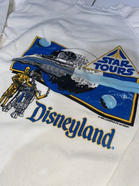 VERY RARE VINTAGE SWEATSHIRTS STAR WARS STAR TOUR DISNEYLAND 1988 Marked size: - Shoulder to shoulder: 17 Pit to pit: 17 Length: 27 Sleeve length: 23 Please make sure to check all pictures and measurements before buying, used product might have some discoloration, marks, scuff, or stains and colors can differ slightly from one monitor to another. You can always ask us to take more picture. Shipment Policy: - Please leave us your CONTACT NUMBER, as it is MANDATORY when shipping your item or else, we will put in a random contact number with consequences the item might get rejected or returned by post services. - Orders are processed within 1-3 working days. Some post services require you to pick up the item at your nearest post office, this depends on the post services, so please always keep checking the post tracking. - International shipping usually takes more than 7-14 working days, it could be either faster or longer. Exchange & Returns Policy: - Since we are selling a used product, we did NOT accept any exchange, refunds, or returns. - Make sure you recheck the whole description, measurement, and pictures. Do not hesitate to ask us anything, we always ready to answer your questions. Follow us on IG: @vintage.collections