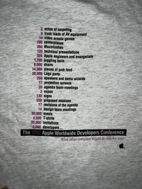 VERY RARE VINTAGE T SHIRTS LONG SLEEVE APPLE WORLDWIDE DEVELOPERS CONFERENCE STEVE JOBS Marked size: - Shoulder to shoulder: 24 Pit to pit: 25,5 Length: 30 Sleeve length: 25 Please make sure to check all pictures and measurements before buying, used product might have some discoloration, marks, scuff, or stains and colors can differ slightly from one monitor to another. You can always ask us to take more picture. Shipment Policy: - Please leave us your CONTACT NUMBER, as it is MANDATORY when shipping your item or else, we will put in a random contact number with consequences the item might get rejected or returned by post services. - Orders are processed within 1-3 working days. Some post services require you to pick up the item at your nearest post office, this depends on the post services, so please always keep checking the post tracking. - International shipping usually takes more than 7-14 working days, it could be either faster or longer. Exchange & Returns Policy: - Since we are selling a used product, we did NOT accept any exchange, refunds, or returns. - Make sure you recheck the whole description, measurement, and pictures. Do not hesitate to ask us anything, we always ready to answer your questions. Follow us on IG: @vintage.collections