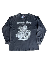 VERY RARE VINTAGE T SHIRTS LONG SLEEVE RAT FINK MOONEYES HOT ROD 1995 MOTHERS WORRY Marked size: LARGE Shoulder to shoulder: 22 Pit to pit: 23 Length: 27,5 Sleeve length: 22 Please make sure to check all pictures and measurements before buying, used product might have some discoloration, marks, scuff, or stains and colors can differ slightly from one monitor to another. You can always ask us to take more picture. Shipment Policy: - Please leave us your CONTACT NUMBER, as it is MANDATORY when shipping your item or else, we will put in a random contact number with consequences the item might get rejected or returned by post services. - Orders are processed within 1-3 working days. Some post services require you to pick up the item at your nearest post office, this depends on the post services, so please always keep checking the post tracking. - International shipping usually takes more than 7-14 working days, it could be either faster or longer. Exchange & Returns Policy: - Since we are selling a used product, we did NOT accept any exchange, refunds, or returns. - Make sure you recheck the whole description, measurement, and pictures. Do not hesitate to ask us anything, we always ready to answer your questions. Follow us on IG: @vintage.collections