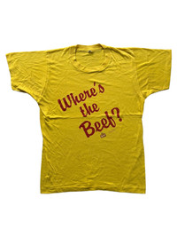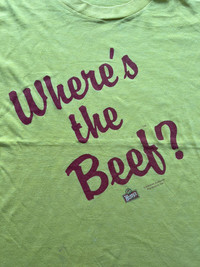 VERY RARE VINTAGE T SHIRTS WENDYS BURGER WHERES THE BEEF PROMO TEE Marked size: - Shoulder to shoulder: 16 Pit to pit: 20 Length: 27 Sleeve length: 7 Please make sure to check all pictures and measurements before buying, used product might have some discoloration, marks, scuff, or stains and colors can differ slightly from one monitor to another. You can always ask us to take more picture. Shipment Policy: - Please leave us your CONTACT NUMBER, as it is MANDATORY when shipping your item or else, we will put in a random contact number with consequences the item might get rejected or returned by post services. - Orders are processed within 1-3 working days. Some post services require you to pick up the item at your nearest post office, this depends on the post services, so please always keep checking the post tracking. - International shipping usually takes more than 7-14 working days, it could be either faster or longer. Exchange & Returns Policy: - Since we are selling a used product, we did NOT accept any exchange, refunds, or returns. - Make sure you recheck the whole description, measurement, and pictures. Do not hesitate to ask us anything, we always ready to answer your questions. Follow us on IG: @vintage.collections