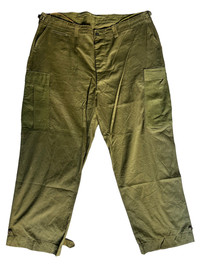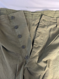 VERY RARE VINTAGE TROUSER PANTS FIELD M43 WWII PARATROOPER Marked size: WAIST 48 INSEAM 32 Waist: 46 Inseam: 32 Leg opening: 10,5 Front rise: 16,5 Please make sure to check all pictures and measurements before buying, used product might have some discoloration, marks, scuff, or stains and colors can differ slightly from one monitor to another. You can always ask us to take more picture. Shipment Policy: - Please leave us your CONTACT NUMBER, as it is MANDATORY when shipping your item or else, we will put in a random contact number with consequences the item might get rejected or returned by post services. - Orders are processed within 1-3 working days. Some post services require you to pick up the item at your nearest post office, this depends on the post services, so please always keep checking the post tracking. - International shipping usually takes more than 7-14 working days, it could be either faster or longer. Exchange & Returns Policy: - Since we are selling a used product, we did NOT accept any exchange, refunds, or returns. - Make sure you recheck the whole description, measurement, and pictures. Do not hesitate to ask us anything, we always ready to answer your questions. Follow us on IG: @vintage.collections