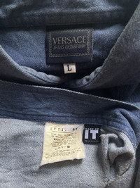 VERY RARE VINTAGE SHIRTS OXFORDS BUTTON UP VERSACE DENIM VERSACE JEANS COUTURE Marked size: L Shoulder to shoulder: 20 Pit to pit: 23 Length: 29 Sleeve length: 23 Please make sure to check all pictures and measurements before buying, used product might have some discoloration, marks, scuff, or stains and colors can differ slightly from one monitor to another. You can always ask us to take more picture. Shipment Policy: - Please leave us your CONTACT NUMBER, as it is MANDATORY when shipping your item or else, we will put in a random contact number with consequences the item might get rejected or returned by post services. - Orders are processed within 1-3 working days. Some post services require you to pick up the item at your nearest post office, this depends on the post services, so please always keep checking the post tracking. - International shipping usually takes more than 7-14 working days, it could be either faster or longer. Exchange & Returns Policy: - Since we are selling a used product, we did NOT accept any exchange, refunds, or returns. - Make sure you recheck the whole description, measurement, and pictures. Do not hesitate to ask us anything, we always ready to answer your questions. Follow us on IG: @vintage.collections