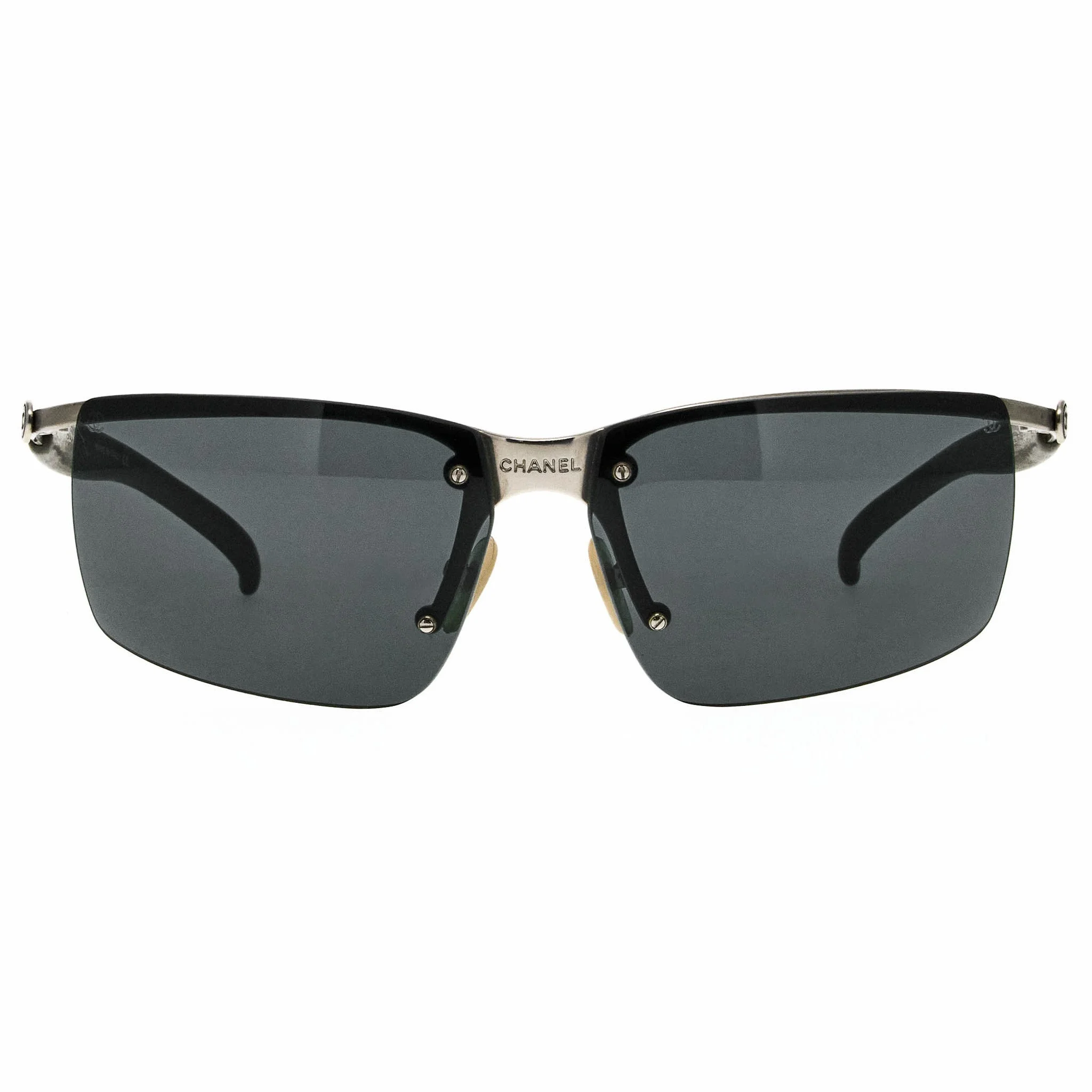 The Chanel 4009 123 71 sunglasses, with its silver/green frame and iconic rectangular silhouette, is a rare vintage sunglasses find for collectors. Vintage Chanel sunglasses from the 1990s represent a blend of luxury and innovative design. Under the creative genius of Karl Lagerfeld, these vintage sunglasses featured bold shapes and exquisite detailing that caught the eye of celebrities like Claudia Schiffer and Kate Moss. In modern fashion, style icons like Gigi Hadid and Sophie Turner are often seen wearing similar vintage styles, demonstrating the enduring legacy of these designs. Chanel’s runway shows during this era were grand spectacles, showcasing these sunglasses alongside stunning haute couture. The ad campaigns highlighted the brand’s sophistication and luxury, making these vintage sunglasses highly desirable. Today, they are rare collectibles, sought after for their unique appeal and craftsmanship. The combination of their limited production and the prestigious Chanel name makes them treasures for collectors. Vintage Frames Company houses the largest designer vintage sunglasses archive in the world, featuring an extensive collection of Vintage Chanel sunglasses from the 1990s and 2000s.