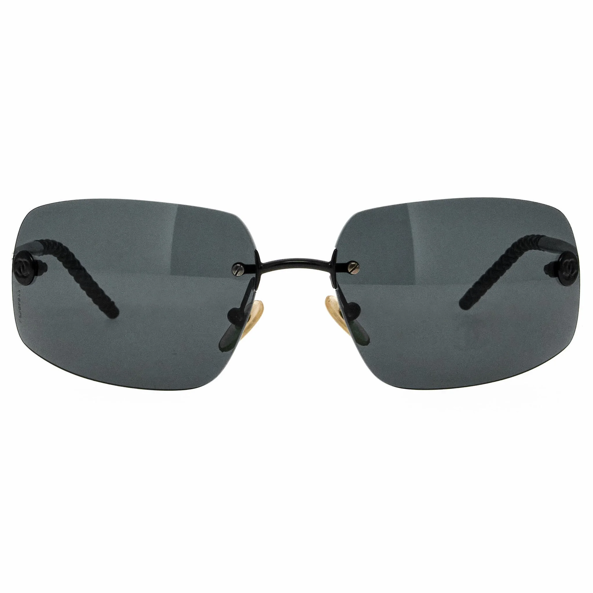 The Chanel 4035 170 71 sunglasses, with its black frame and iconic rectangular silhouette, is a rare vintage sunglasses find for collectors. Vintage Chanel sunglasses from the 1990s remain a pinnacle of fashion, showcasing the unique vision of designer Karl Lagerfeld. With their bold styles and innovative details, these vintage sunglasses attracted attention from fashion-forward individuals and celebrities like Michelle Pfeiffer and Miranda Kerr. Chanel’s runway shows were known for their opulence, where these sunglasses complemented stunning outfits and left a lasting impression. The brand's ad campaigns were equally impressive, often highlighting the luxury associated with these vintage sunglasses. Today, they are rare finds in the vintage market, cherished by collectors for their exquisite craftsmanship and iconic status. The scarcity of these designs has made them even more desirable, with vintage enthusiasts eager to add them to their collections. Vintage Frames Company proudly holds the largest designer vintage sunglasses archive in the world, featuring an extensive collection of Vintage Chanel sunglasses from the 1990s and 2000s.