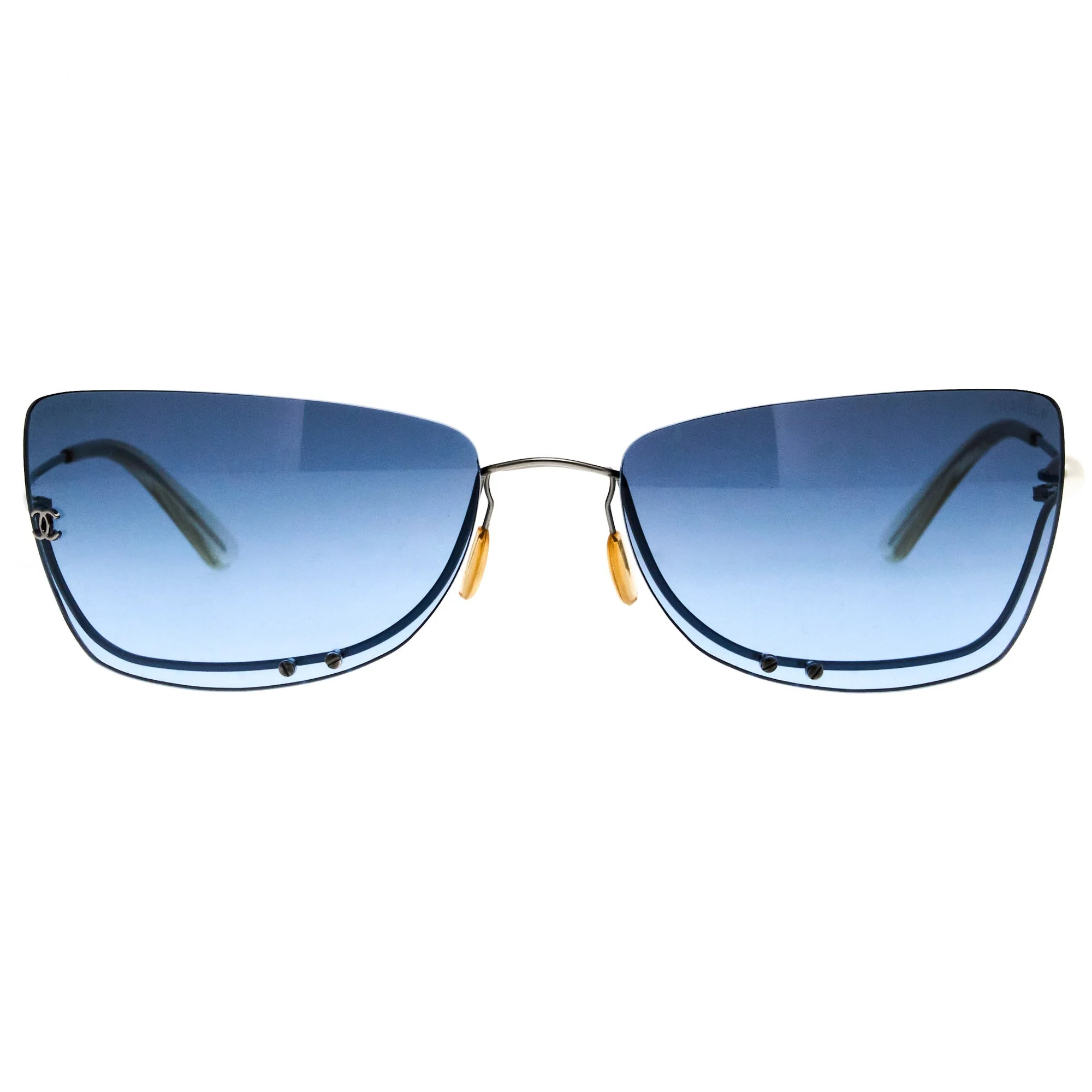 The Chanel 4053H 189 8F sunglasses, with its silver frame and iconic rectangular silhouette, is a rare vintage sunglasses find for collectors. The 2000s were marked by the emergence of Vintage Chanel sunglasses, which redefined fashion trends with their innovative designs. Created under the artistic direction of Karl Lagerfeld, these sunglasses featured oversized silhouettes and chic embellishments that captured the spirit of the era. Icons such as Jennifer Aniston and Paris Hilton were often seen donning these vintage sunglasses, making them a staple in Hollywood glamour. Chanel's runway shows were theatrical spectacles, showcasing models in striking outfits complemented by these bold accessories. The ad campaigns were equally captivating, often portraying a sense of exclusivity and sophistication. These Vintage Chanel sunglasses were distributed through prestigious retailers, ensuring they reached a discerning clientele. The signature Chanel logo, often prominently displayed on the frames, became an emblem of luxury and style. Vintage Frames Company proudly holds the largest collection of Vintage Chanel sunglasses from the 1990s and 2000s, making it a treasure trove for vintage fashion lovers.