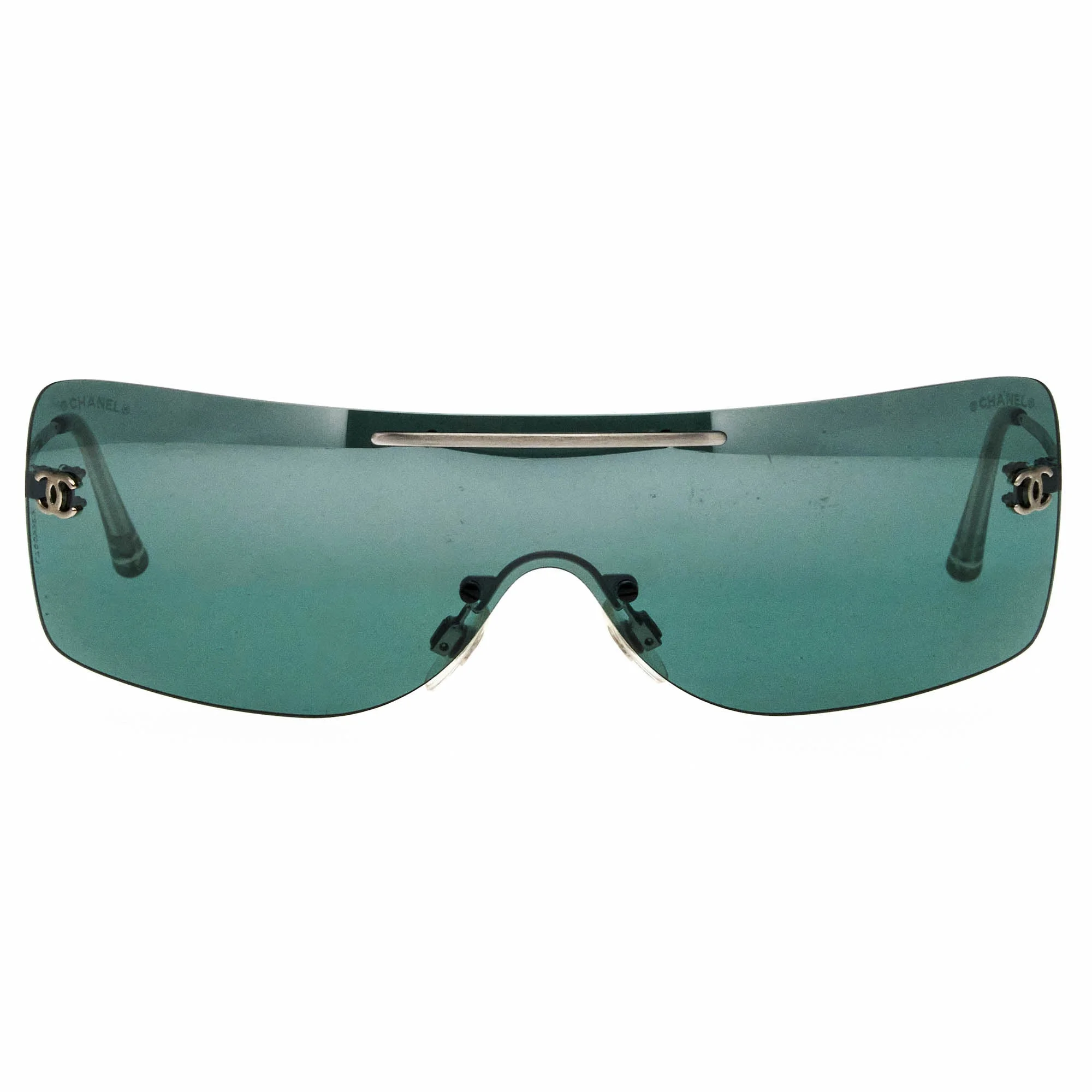The Chanel 4080 164 7G sunglasses, with its silver frame and iconic half rim silhouette, is a rare vintage sunglasses find for collectors. Vintage Chanel sunglasses from the 2000s exemplify the fusion of glamour and practicality. Under Karl Lagerfeld’s creative direction, these vintage sunglasses were designed to make bold fashion statements while providing sun protection. Celebrities like Nicole Richie and Kate Hudson embraced these sunglasses, making them staples in their wardrobes. The runway shows were grand, filled with intricate set designs and theatrical presentations that showcased these iconic shades. Chanel's ad campaigns were visually stunning, featuring striking imagery that highlighted the beauty and luxury of the sunglasses. These Vintage Chanel sunglasses were distributed in high-end department stores and exclusive boutiques, making them highly sought after. The iconic Chanel logo, a hallmark of sophistication, often adorned the frames, adding to their allure. Vintage Frames Company is the largest designer vintage sunglasses archive in the world, offering an extensive collection of Vintage Chanel sunglasses from the 1990s and 2000s.