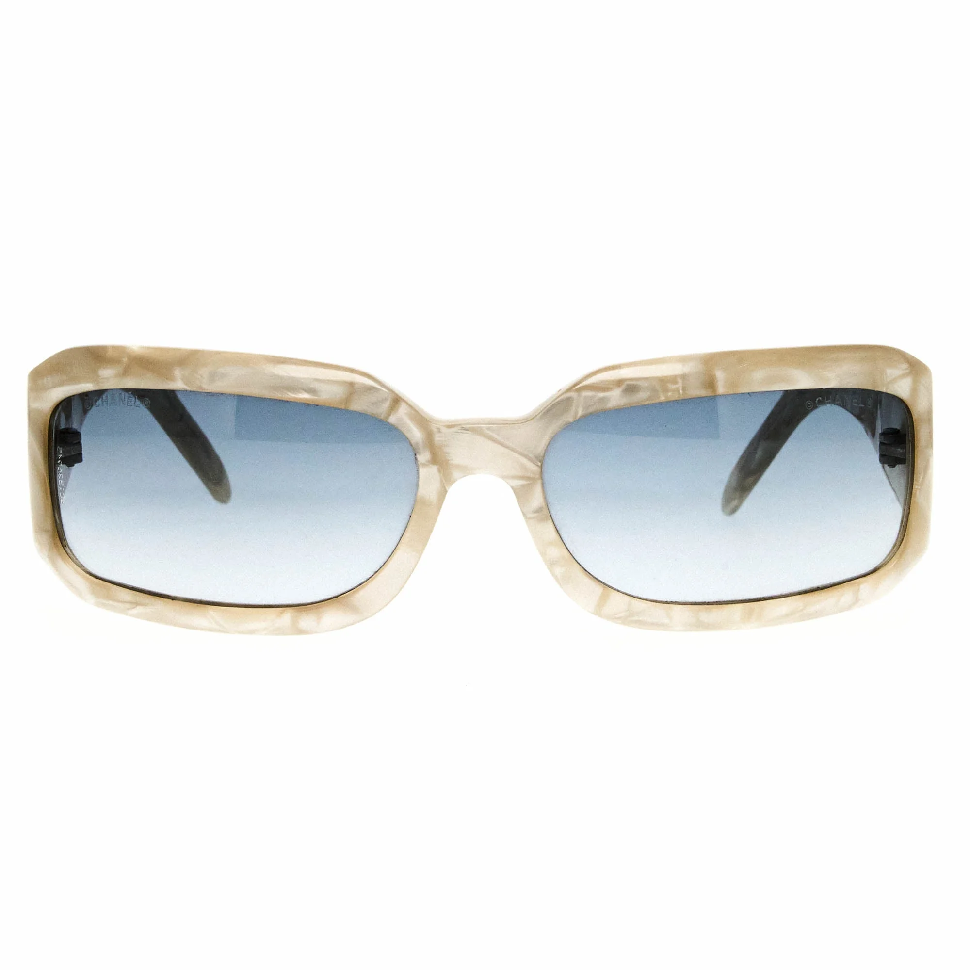 The Chanel 5064B 663 6N sunglasses, with its pearl frame and iconic rectangular silhouette, is a rare vintage sunglasses find for collectors. In the world of Vintage sunglasses, Chanel's designs from the 1990s stand out for their unique blend of elegance and audacity. Designed by the legendary Karl Lagerfeld, these vintage sunglasses featured distinctive geometric shapes and rich color palettes. Worn by luminaries like Linda Evangelista and Kate Moss, they quickly became synonymous with high fashion. The runway shows during this era were marked by grandiose themes and dramatic presentations, often showcasing these vintage sunglasses as key accessories. Chanel's advertising campaigns were bold and artistic, further cementing the brand's reputation for luxury. These sunglasses were available in select luxury boutiques globally, appealing to a fashionable elite. Iconic attributes of the Chanel logo included the dual C’s, symbolizing interlocking sophistication and status. Vintage Frames Company is the largest designer vintage sunglasses archive in the world, housing an extensive collection of Vintage Chanel sunglasses from the 1990s and 2000s.