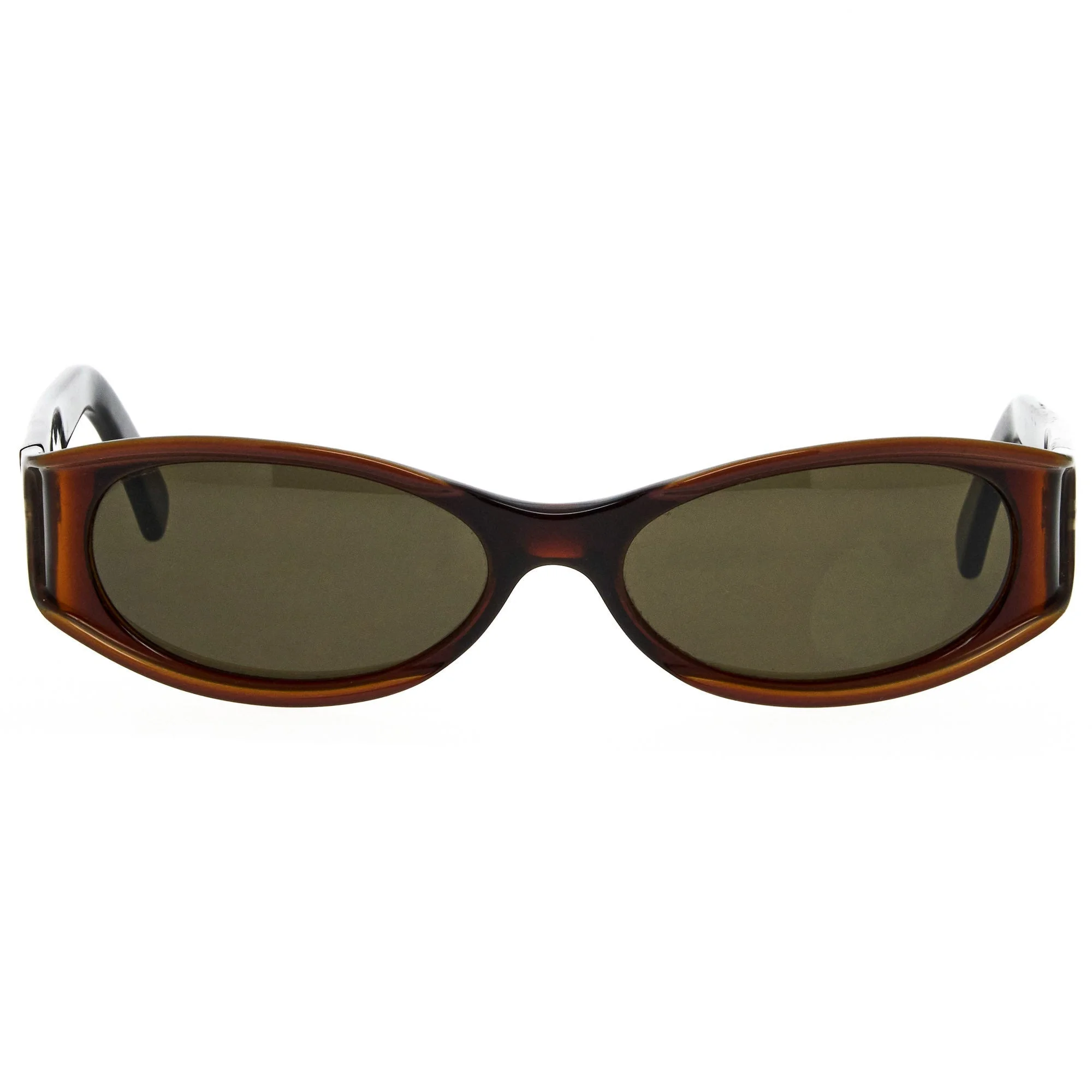 Vintage Etro Sunglasses capture the bohemian spirit and luxurious craftsmanship that the iconic Italian fashion house is known for. Renowned for its signature paisley patterns and vibrant designs, Etro creates eyewear that fuses bold artistry with timeless sophistication. Each pair of Vintage Sunglasses reflects the brand’s dedication to individuality, featuring unique frame shapes, intricate details, and rich color palettes. Perfect for collectors and fashion enthusiasts alike, these sunglasses are the epitome of wearable art. Explore the unmatched selection of Vintage Etro Sunglasses at Vintage Frames Company, where each pair is authenticated and preserved as a piece of fashion history. The Etro SE 9732 W17 vintage sunglasses, with its brown/red frame and iconic rectangular silhouette, is a rare vintage sunglasses find for collectors.