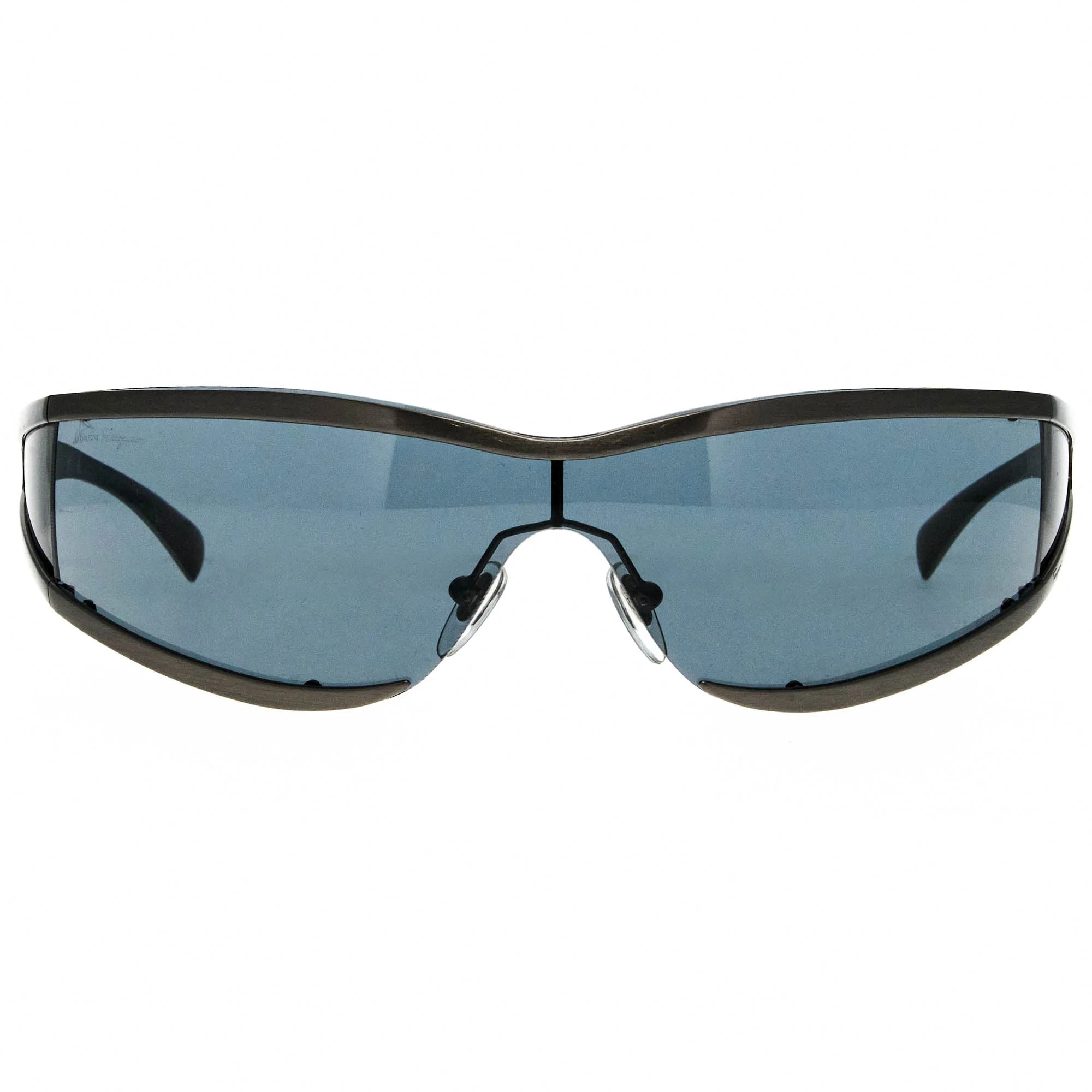 Salvatore Ferragamo believed in blending artistry with functionality, and this philosophy extended into his eyewear collections. The brand’s vintage sunglasses from the 90s took inspiration from Ferragamo’s heritage in Italian craftsmanship, featuring fluid frame structures and intricate gold embellishments. Whether it was a sleek oval frame with gradient lenses or a striking geometric design with metallic temple accents, Ferragamo knew how to create eyewear that stood out without being ostentatious. Today, collectors and fashion enthusiasts continue to seek out these sunglasses as timeless statement pieces. Vintage Frames Company is the leading destination for the rarest Ferragamo vintage sunglasses worldwide. The Ferragamo 1085 692 87 120 vintage sunglasses, with its silver frame and iconic shield silhouette, is a rare vintage sunglasses find for collectors.