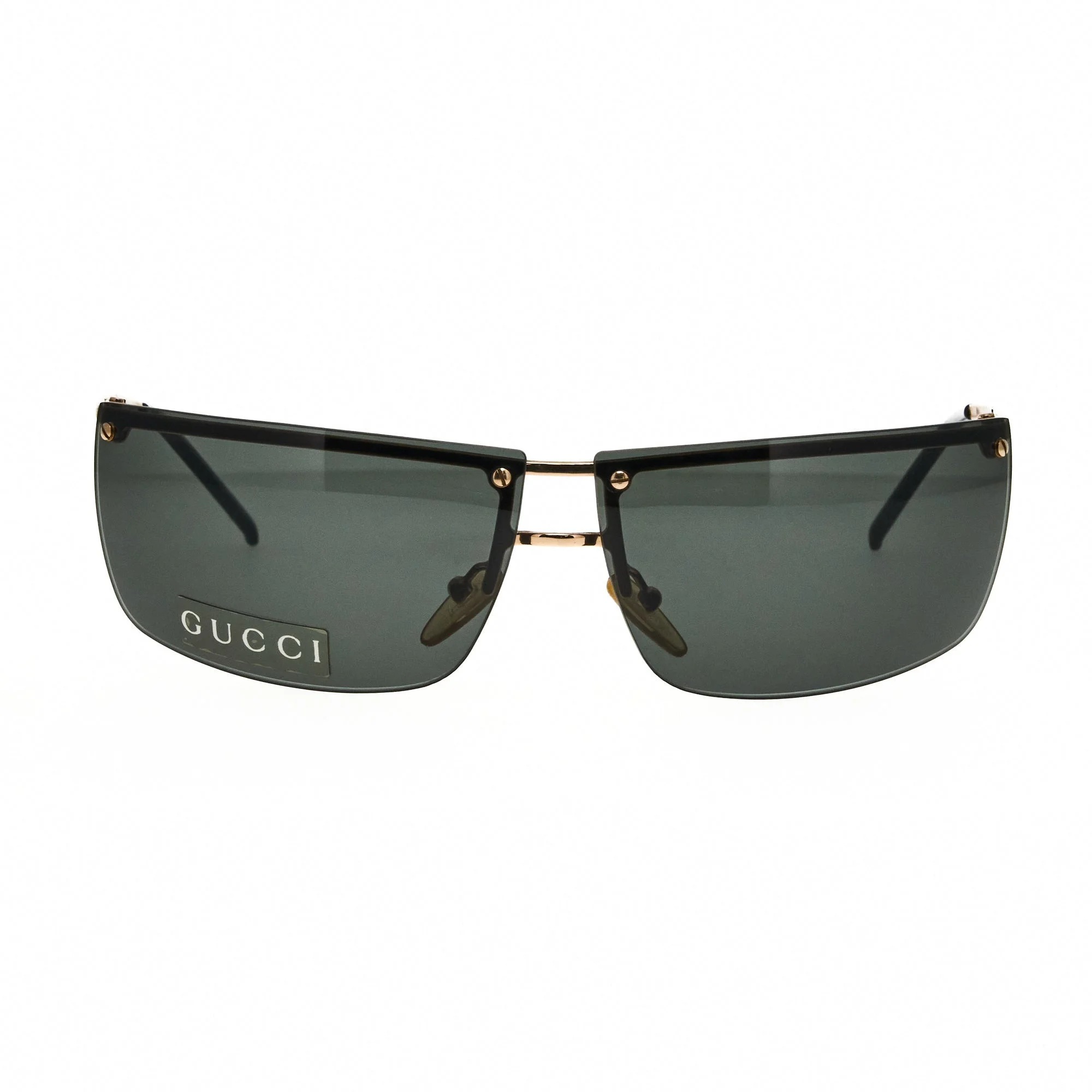 The Gucci Gg 2653/S 00079 sunglasses, with its silver frame and iconic half rim silhouette, is a rare vintage sunglasses find for collectors. Founded by Guccio Gucci in 1921, Gucci began as a purveyor of fine leather goods, quickly growing into a fashion powerhouse. The brand's vintage sunglasses are a prime example of its commitment to excellence, showcasing unique details such as oversized frames, tinted lenses, and the iconic interlocking G logo. Each pair of Vintage Gucci sunglasses is crafted from premium materials, creating a luxurious accessory that remains stylish across decades. Due to their rarity, these sunglasses are highly sought after by collectors worldwide. Vintage Frames Company, the expert in vintage eyewear, offers the largest selection of Vintage Gucci sunglasses available globally.
