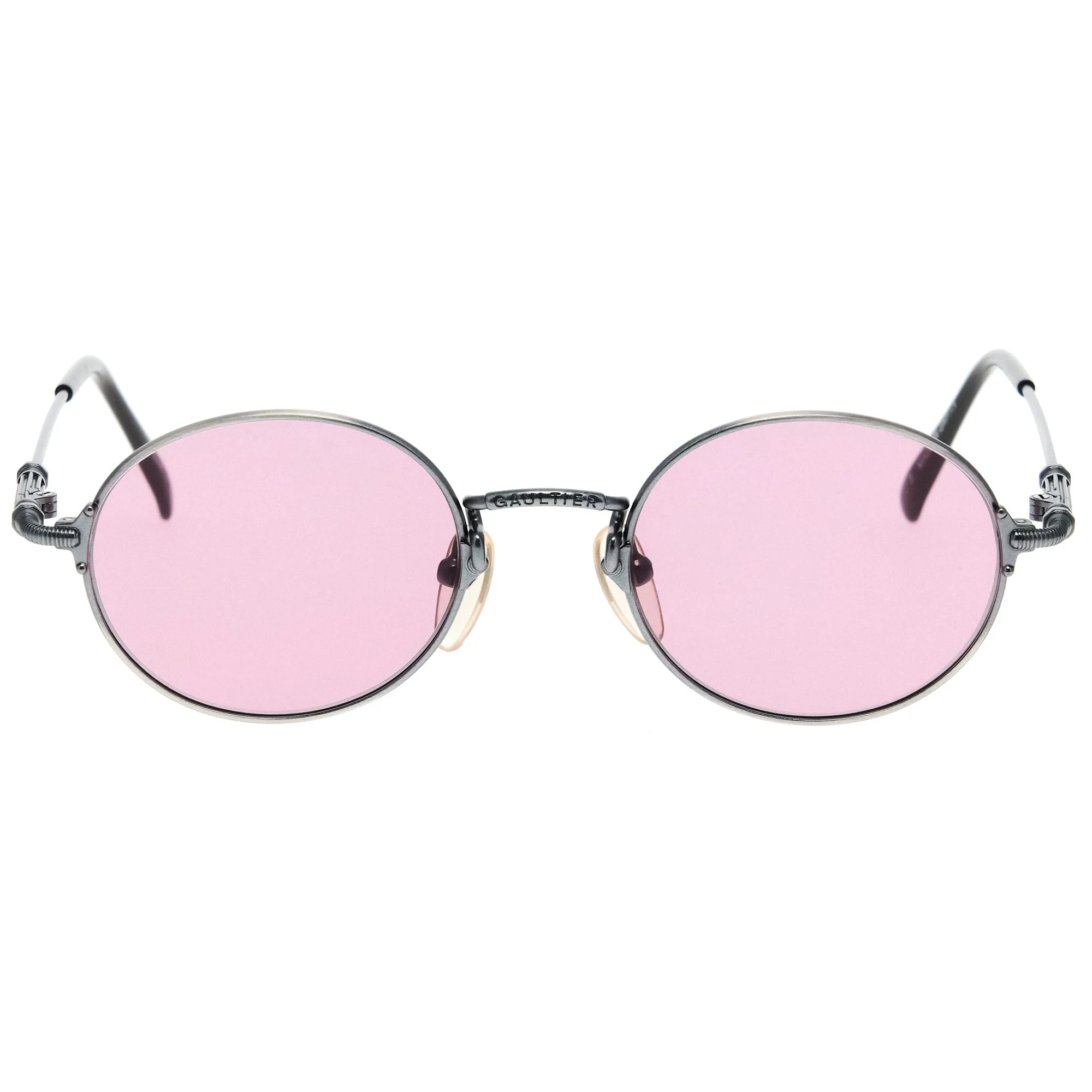 The Jean Paul Gaultier 55-6109 2 sunglasses, with its black silver matte frame and iconic round silhouette, is a rare vintage sunglasses find for collectors. Jean Paul Gaultier’s eyewear transformed the fashion landscape in the 90s, with designs that were as bold and unique as the stars who wore them. Celebrities like David Bowie and Winona Ryder embraced Gaultier’s edgy, industrial style, making his sunglasses a statement piece for the decade. Vintage Jean Paul Gaultier Sunglasses are now highly collectible, celebrated for their daring shapes, riveted accents, and timeless appeal. Vintage Frames Company is proud to offer the largest archive of Vintage Jean Paul Gaultier Sunglasses, each pair in pristine, deadstock condition and meticulously authenticated. For collectors and admirers of 90s fashion, these sunglasses are more than just eyewear—they’re a link to an era defined by fearless creativity and individuality, offering a bold statement in any collection.