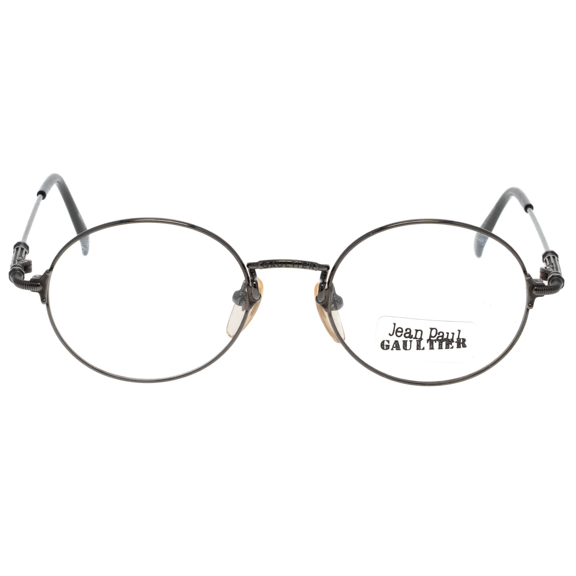 The Jean Paul Gaultier 55 6109 3 (Clear) vintage sunglasses, with its gray frame and iconic round silhouette, is a rare vintage sunglasses find for collectors. Jean Paul Gaultier sunglasses are celebrated for their unconventional style and fearless aesthetic. Featuring mechanical-inspired elements, angular lines, and superior craftsmanship, these frames showcase Gaultier’s dedication to pushing creative limits. At Vintage Frames Company, we offer an unmatched selection of authentic, deadstock Jean Paul Gaultier sunglasses for collectors and fashion enthusiasts. These rare pieces capture the spirit of avant-garde luxury and enduring design. These Vintage Sunglasses are brand new DEADSTOCK. You will be receiving the exact ones you see in the picture, please make sure you check out the whole frame. Should you have any questions, please contact us for details. We have staff available 24hrs a day to help make your shopping experience as easy as possible!