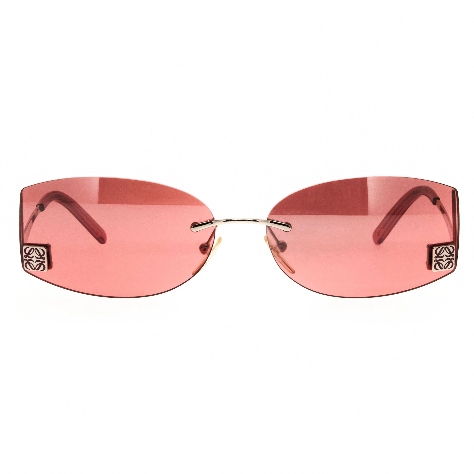 The Loewe SLW 102 E55 sunglasses, with its red frame and iconic rimless silhouette, is a rare vintage sunglasses find for collectors. Elevate your look with the unmistakable elegance of Vintage Loewe Sunglasses, a signature of Spanish luxury. Founded in Madrid in 1846, Loewe has long been recognized for its impeccable leather craftsmanship and forward-thinking designs. Guided by Enrique Loewe Roessberg, the brand’s eyewear collections showcased minimalism with a bold edge, particularly in the early 2000s when fashion-forward individuals sought out Loewe’s understated yet distinctive sunglasses. Vintage Frames Company offers the largest collection of authentic Vintage Loewe Sunglasses, preserving the legacy of this iconic brand. Discover unworn treasures that reflect Loewe’s commitment to heritage and innovation.