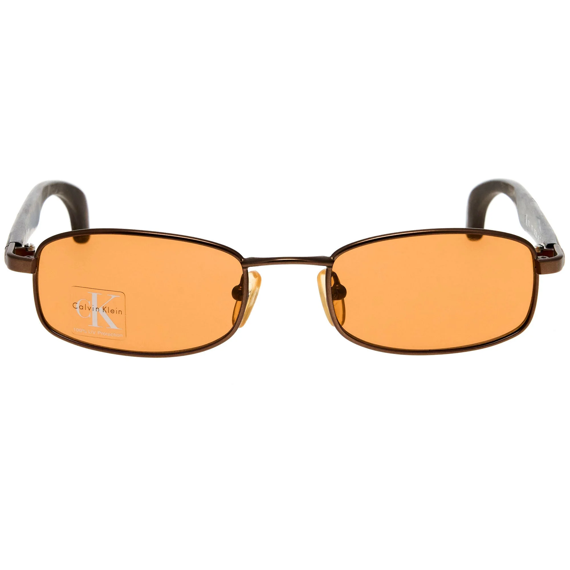 The Calvin klein 1021 11T sunglasses, with its bronze/black frame and iconic rectangular silhouette, is a rare vintage sunglasses find for collectors. There’s something undeniably editorial about Calvin Klein vintage sunglasses. You can imagine them on a Helmut Newton model, standing in black and white against a New York skyline. Their beauty is in the restraint—soft curves, sharp edges, and minimal detail that all come together for maximum impact. From frameless shields to narrow wire-rimmed lenses, CK eyewear from the 90s and early 2000s is as collectible as it is wearable. Tap into that quiet power at Vintage Frames Company.