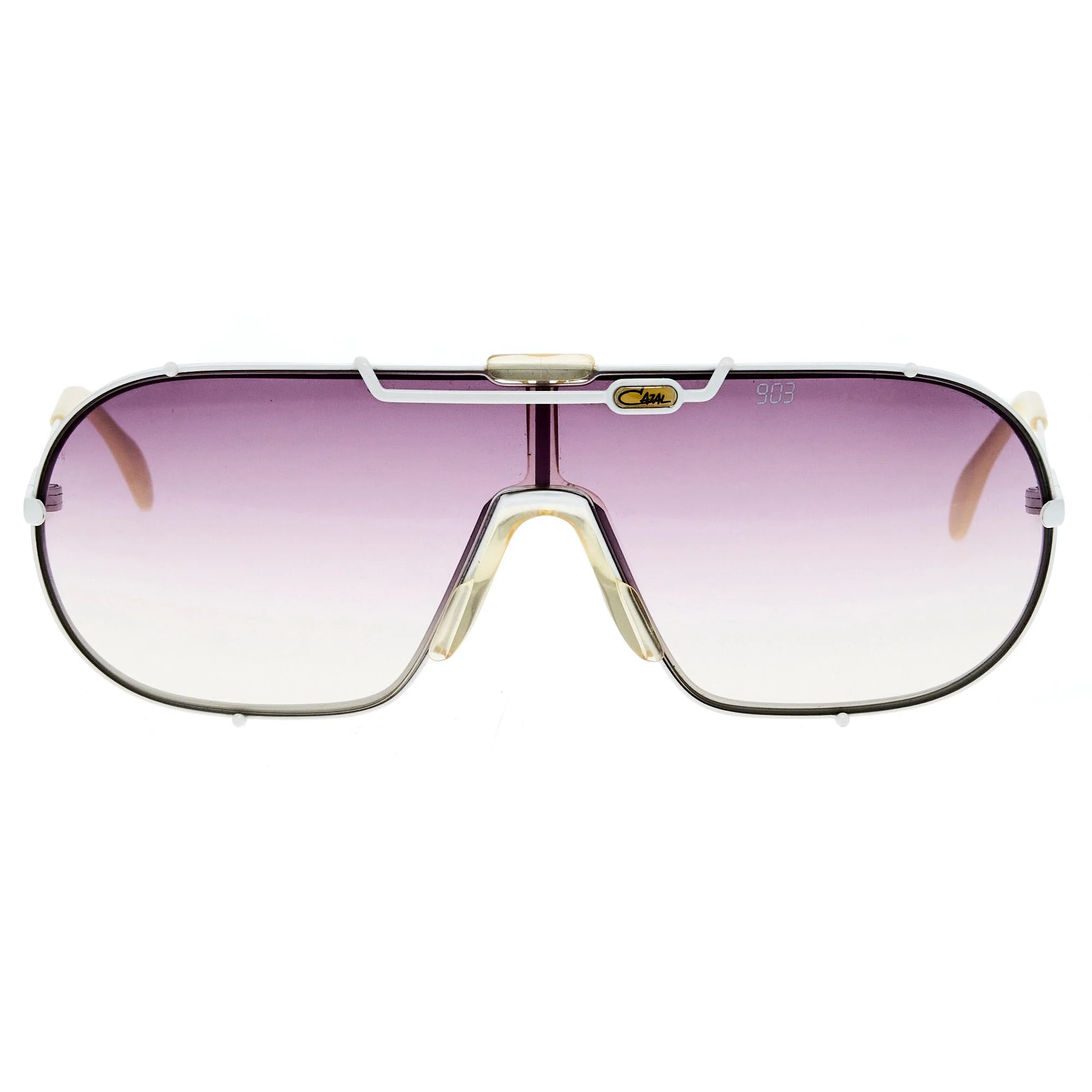 The Cazal MOD 903 COL 70 vintage sunglasses, with its white frame and iconic shield silhouette, is a rare vintage sunglasses find for collectors. Cazal is where luxury meets attitude. During the 1990s and early 2000s, the brand produced some of the most visually daring eyewear in fashion history—frames that were oversized, aggressively styled, and instantly recognizable. These sunglasses carry legacy status, from street culture to high fashion editorials. Revered for their bold DNA and limited runs, vintage Cazal frames are statement collectibles. Explore exclusive Cazal sunglasses now at Vintage Frames Company.
