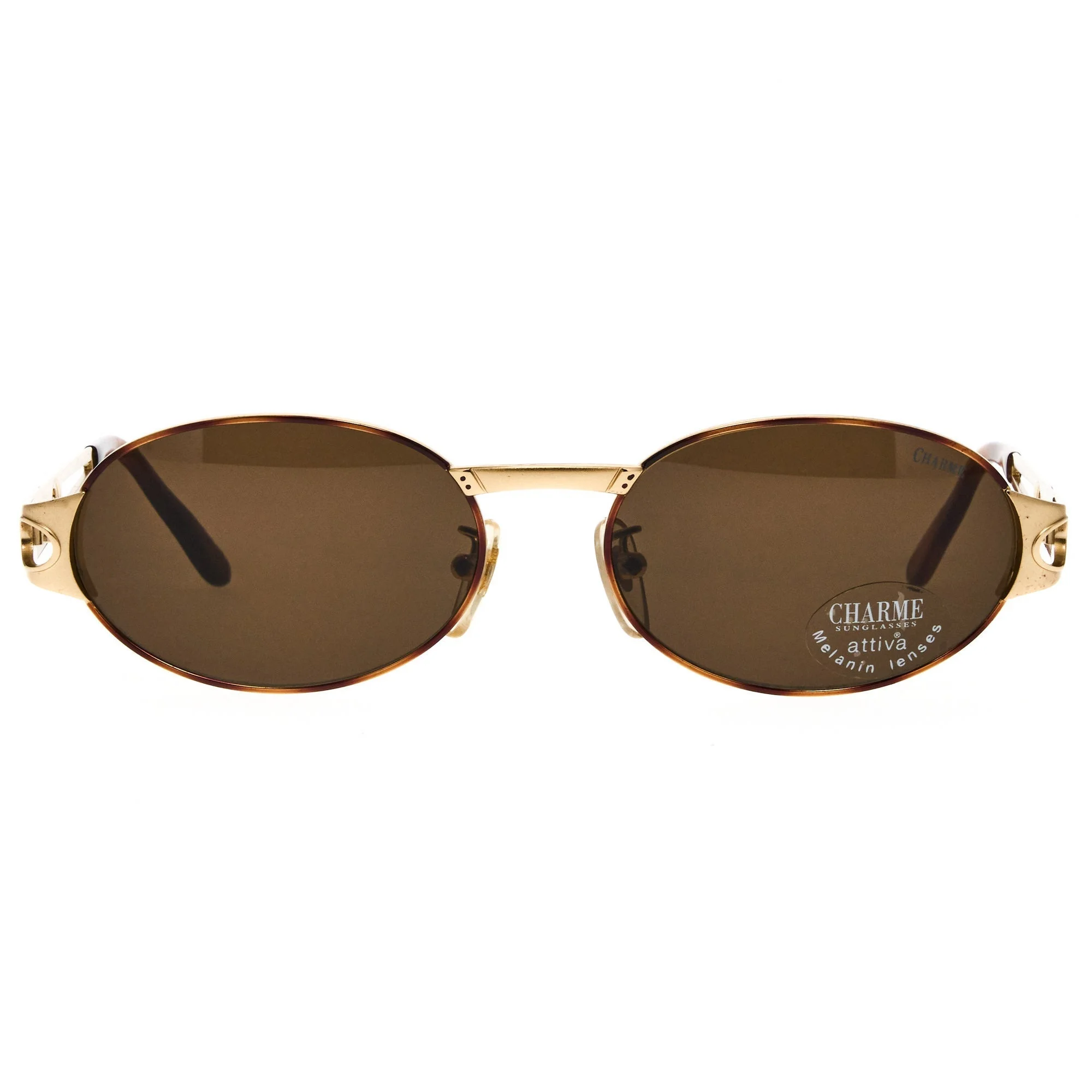 Embrace the timeless elegance of Vintage Charme sunglasses, a brand synonymous with Italian luxury and design innovation. Crafted during the height of European eyewear fashion, Charme sunglasses are celebrated for their intricate craftsmanship and bold aesthetics. Featuring unique silhouettes, exquisite detailing, and premium materials, these sunglasses stand as a testament to the brand’s commitment to excellence. For collectors and connoisseurs, Vintage Charme sunglasses offer a chance to own a piece of history. Vintage Frames Company boasts the largest collection of unworn, authenticated vintage sunglasses, including rare Charme designs that embody the glamour and sophistication of a bygone era. From oversized frames to sleek geometric designs, Vintage Charme sunglasses were the perfect accessory for style icons of the 1980s and 1990s. Their bold color palettes and innovative designs made them a favorite among individuals who sought eyewear that was both functional and artistic. Every detail, from the frames to the temple engravings, reflects Charme’s dedication to creating high-quality, timeless designs. The Charme 7553 268 vintage sunglasses, with its gold/brown tortoise frame and iconic oval silhouette, is a rare vintage sunglasses find for collectors.